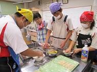 7月7日 魚さばき体験を行いました。青アジを3枚におろし、アジフライ・竜田揚げにしました。