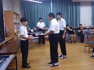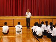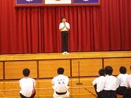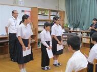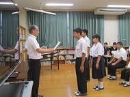 7月9日 県中体連の推戴式を実施しました。本校からは、水泳競技・空手競技に出場します。
