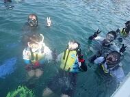 【 出発前の説明 】 【 海へエントリー 】 【 記念写真 】 【 観察開始 】