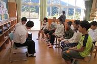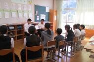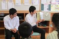 朝の時間を活用して、中学生が小学生に読み聞かせを行いました。