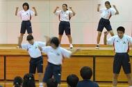 【 職場体験報告 】 【 作文披露 家族への感謝とこれからの自分 島を離れる年になりました 】 【 全員ダンス 】