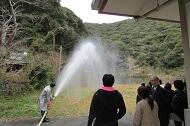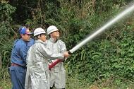 火災想定の訓練で、消火栓の確認や放水体験をしました。火事を起こさないように生活しましょう。