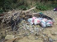 影の谷でゴミ回収作業を行いました。流木やペットボトル、空き缶など回収しました。
