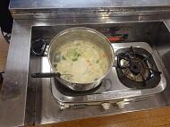 小麦粉からルーをつくり、クリームシチューが完成しました。