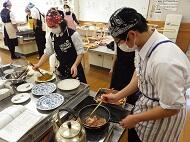 2月28日 家庭科の授業で1年生が、調理実習を行いました。