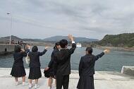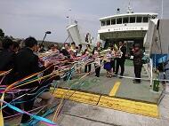 離任式の後、11:00のフェリーで先生方が島を離れられました。