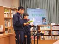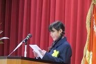 第3学年代表生徒 「物事に全身全霊で取り組みます。すべての人に感謝の気持ちと誠意をもって接します。」