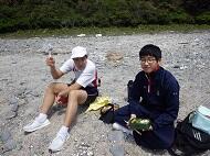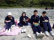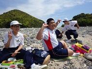 対面式の後、歓迎遠足を行いました。日井の浜まで行き、アサリ堀大会を行いました。