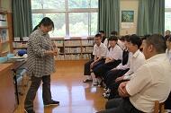 学校長の話:「防災意識、中学生は地域の活力の源になり得るので島のパズルのワンピースとなってほしい」