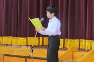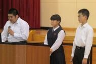 文化祭の幕間で、3年生が保護者や島への感謝の作文を披露しました。