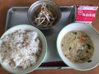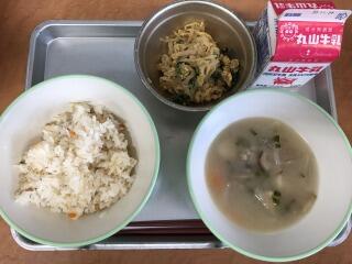 【じゃこご飯 牛乳 千切り大根の卵とじ 豆腐団子汁】