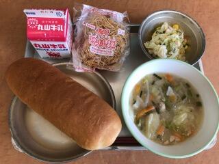 【減量コッペパン 牛乳 焼きそば バンバンジー】