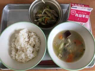 【麦ご飯 牛乳 小鮎の南蛮漬け さつま汁】