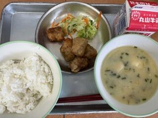 【白ご飯 牛乳 みやざき地頭鶏のレモン和え そえ野菜 呉汁】
