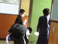 延岡市では「子どもたちに伝えたいこと事業」があり、各学校に講師の方に来ていただき、仕事や生き方についての話をしていただいています。島野浦中学校でも昨年実施し、九州保健福祉大学の先生に半紙をしていただきました。今回の東海中学校では多くの講師の方に来ていただき、複数の職業を知る機会となるものなので、一緒に聞かせていただきました。