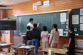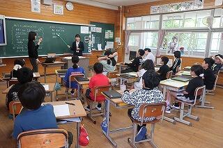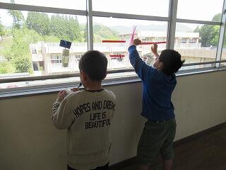 12月17日、1,2年生がむかしの遊びを体験しました。荒平会の方7名が来てくださり、「竹馬」「竹とんぼ」「ごま回し」「ぱちんこ」「リム回し」「ビー玉」を楽しんだ後、2チームに分かれて「たたきベース」もしました。難しくてうまくできないこともありましたが、日頃触れることの少ない遊びに子ども達は、時のたつのも忘れ夢中になっていました。