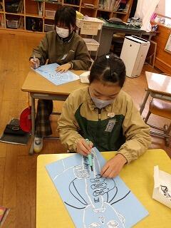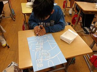 4年生の図工で版画に取り組んでいます。