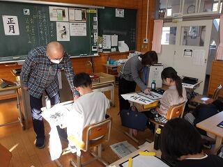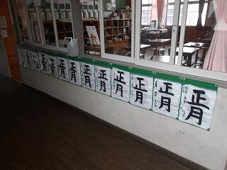 習字の学習がありました。新年1回目ということで書初めをしました。書いた字は「正月」。3年生で学習した、たて画・横画・はらい・おれ・はねとすべてが入った文字です。