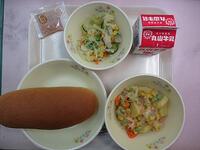 コッペパン 牛乳 肉団子のスープ 洋風白和え