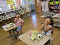 今日 は目 に良 い栄養 についてのお話 です。明日 10月10日 は『目 の愛護 デー』といって、目 を大切 にする日 です。今日 の給食 は 目 に良 い食 べ物 をたくさん使 っています。すまし汁 には、にんじんやほうれん草 、元気揚 げにはかぼちゃなど、色 の濃 い野菜 を入 れました。この濃 い野菜 にはビタミンAという栄養素 が入 っており、このビタミンAが不足 していると、暗 いところで目 が見 えにくくなったり、涙 が出 にくくなったり、目 が乾燥 したりします。ブルーベリーにもアントシアニンという目 の健康 や視力 を保 つために必要 な成分 が入 っているので、目 に良 い食 べ物 の一 つです。今日 は目 の健康 を考 えて残 さず食 べましょう。