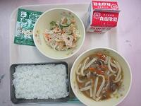 ごはん ふりかけのり 牛乳 肉うどん れんこんの和え物