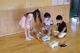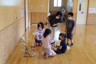 小学2年生は、生活科「せかいでひとつ わたしのおもちゃ」の学習を武道場で行いました。