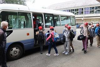 本日から、小学校5年生は「集団宿泊学習」のため、むかばき青少年自然の家へ出発しました。体育館にて、出発式を行い、職員や保護者に見送られながら元気にスクールバスに乗車しました。