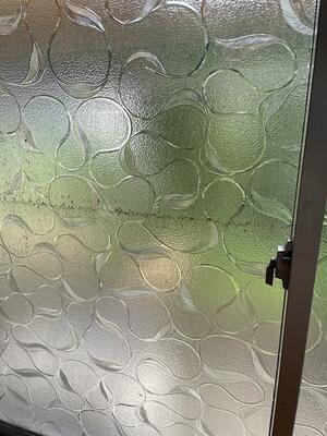 この部屋は一階窓まで浸水しました。泥水の跡が窓に残っています。