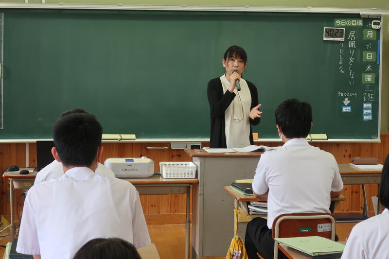 3年生は現在総合的な学習の時間でLGBTQ問題について取り組んでいます。その授業の一環として10月6日(木)、宮崎県男女共同参画地域推進員の黒木瑞季さんから3年生に講話をしていただきました。