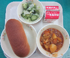 ミルクパン、牛乳、ビーフシチュー、ツナサラダ