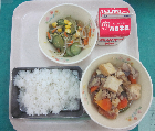 ごはん、牛乳、肉じゃが、ちりめん和え
