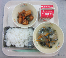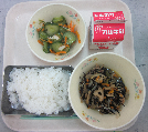 ごはん、牛乳、ひじきの炒り煮、土佐酢和え