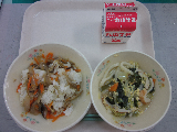 ごはん、牛乳、高野豆腐の卵とじ、梅肉和え