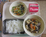 ごはん、牛乳、たけのこのうまに、千切り大根の酢の物