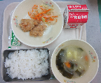 ごはん、牛乳、そうめん汁、厚揚げの甘辛炒め