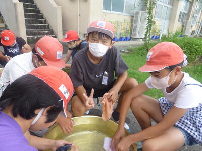 子ども達は「ありがとう」や「もっと大きくなってね」と言って逃がしていました。
