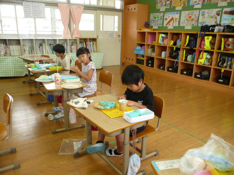 うどんやスパゲッティを作る時には粘土をほそーくほそーくのばし、おだんごを作る時にはまるくまるくして、本当に楽しそうでした。