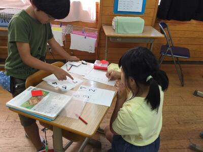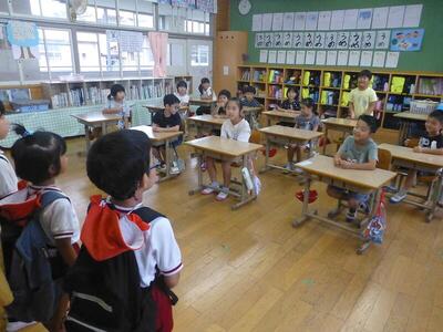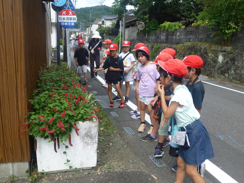 2年生は町探検に行ってきました。支所や文化センター、駐在所などがある、一番大きな通りへ行ってきました。施設を見つけながら、「ここで発表をしたことがある!」「ここで習い事をしている!」など、じぶんの経験と結び付けて、たくさん教えてくれました。途中で会った人にも自分からあいさつをすることができました。