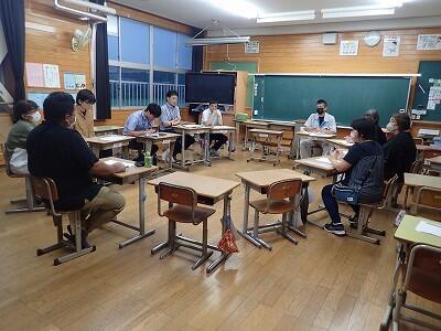 まず、各地区委員の方を中心に、地区内の通学路・生活区域危険箇所の確認や、各地区での児童生徒の様子についての情報交換と話し合いが行われました。次に、学校職員より、夏休みの過ごし方と河川遊泳、公共施設でのマナー等について話をしました。