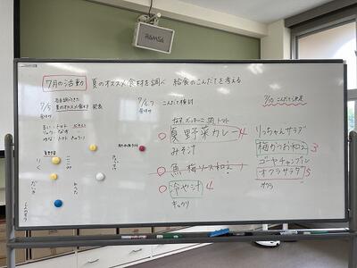 「夏野菜は栄養が多く含まれている!」「体を冷やすから夏バテ防止になる!」などの調べてきた結果から夏野菜を使った献立に決まりました。献立もたくさん考えて選ぶのに困ってしまうほどでした。9月の給食に出るので楽しみにしていてくださいね♪