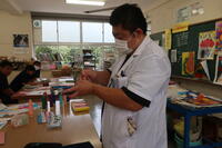 本校は、学校薬剤師の佐藤先生が教室やプールの水質や空気、照度など各種検査をしてくださっています。