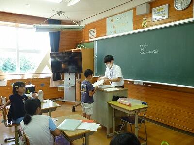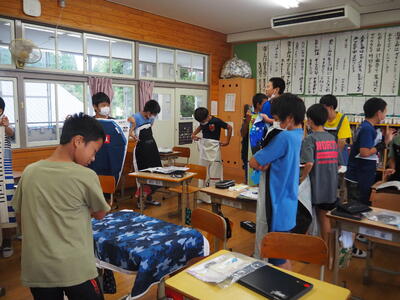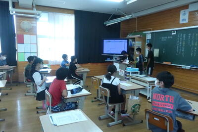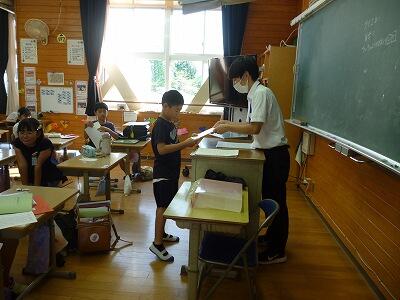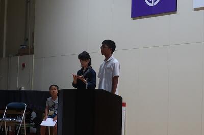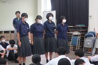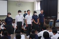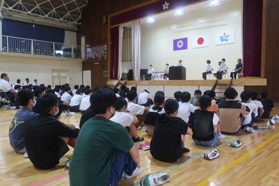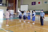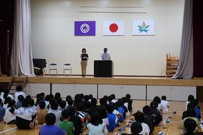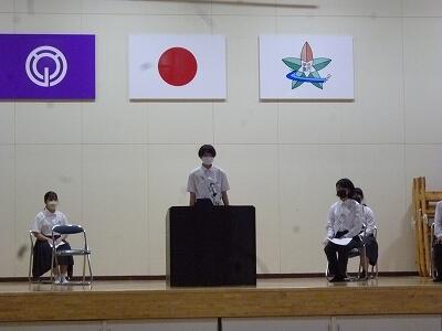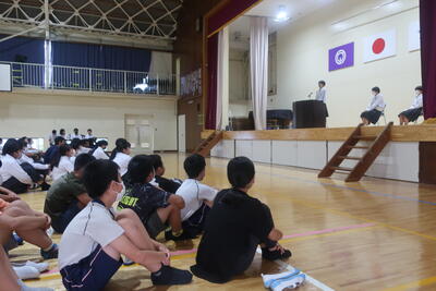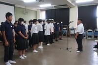 本日は1学期終業の日でした。3校時に行われた終業式では、代表児童生徒2名による作文発表や校長先生からの話がありました。その後、小中別で集会を行い、夏休みの過ごし方等について担当職員から話をしました。また、少年団や部活動の大会で入賞したチーム・児童生徒の表彰・校納を行い、活躍を讃えました。