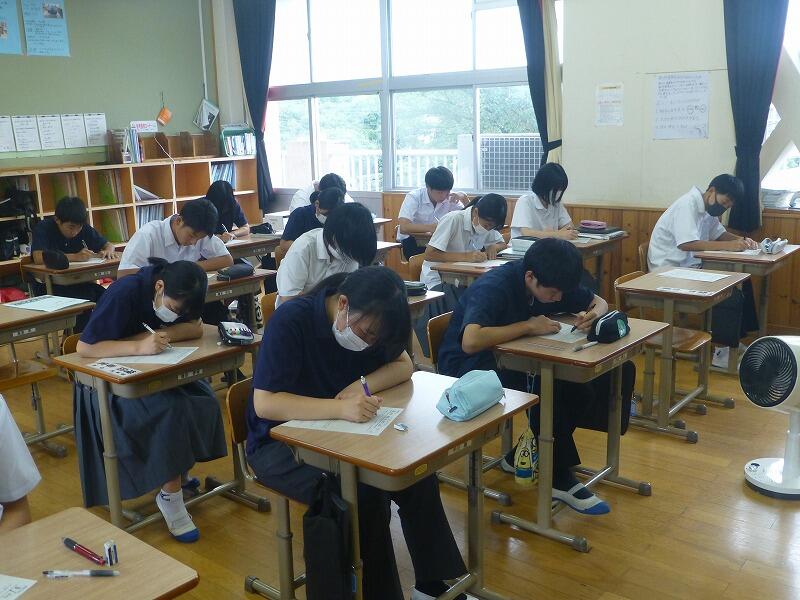 8月は夏休み期間ですが、中学校3年生は希望者のみ1、2年生の内容を中心とした夏休み学習会を実施してます。計6日間の間に5教科の補講を行います。ほとんどの生徒が参加しており、真剣な眼差しで授業を受けていました。この夏休みの頑張りが9月の実力テストに成果として表われると思います。