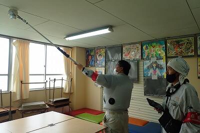 夏休みに入ったので、ダニとホルムアルデヒドの検査をしていただきました。(写真は1学期に行った空気検査と黒板の照度検査の様子です。)