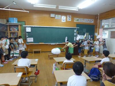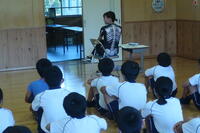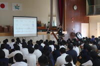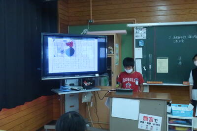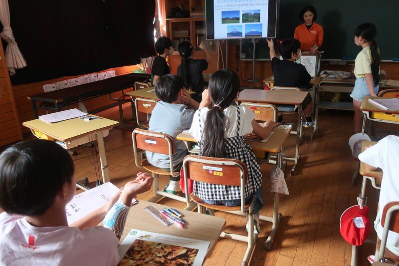 行縢(むかばき)という名前の由来、むかばきに生息している動物や植物、むかばき山がどうやってできたのか、むかばきの神話など、絵や図を使って大変分かりやすく教えていただきました。5年生の子どもたちは講師のお話に引き込まれ、今までよりもむかばき山への興味・関心を高めているようでした。講話後の質疑応答、感想やお礼の言葉を述べる際は、自分たちから手を挙げて発表する姿がたくさんありました。