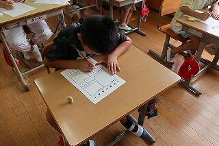 実際に黒豆を30個、お椀に移し替える練習もしました。自分の順番を待っている間、友達を心配そうに眺めるほほえましい姿も見られました。