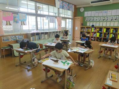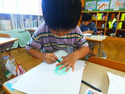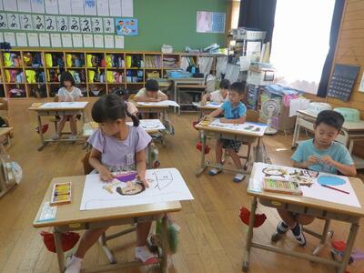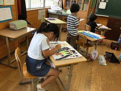 前回のHPでお知らせしていた読書感想画ができあがりました。集中して色ぬりをすることができました。