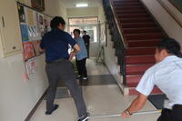 もしも、学校で火災が発生したら、子供たちを守ることが最優先です。そのために、学校では教職員の研修や子供たちの避難訓練を行っています。また、消防施設の面では、市教育委員会が業者に委託し、定期的に点検と修繕をしてくださっています。