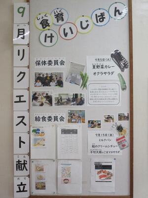 中学校保体委員会の7月の目標は、「夏の暑さに負けない体づくりをしよう」です。今月は“食”の面から考えてみたそうです。委員会の生徒たちが夏のおすすめの食材を調べ、それらを使った給食の献立を考えることになりました。