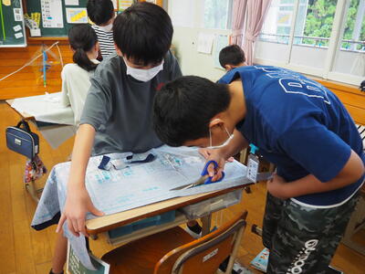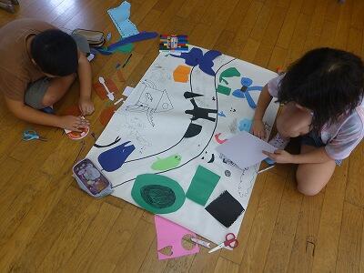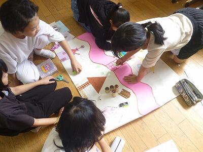 お菓子の町や不思議生物だらけの町、ゲームの町など、グループごとに様々な夢の町が完成しそうです。完成後は教室に掲示したいと思います。